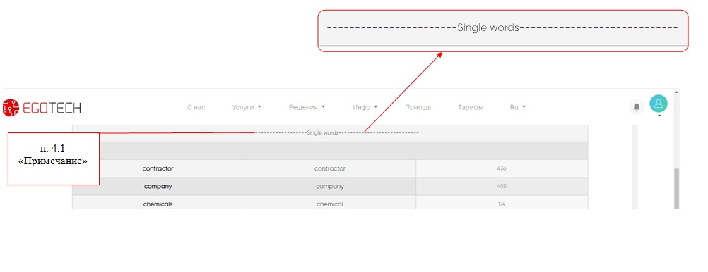 В) Количественное значение частоты встречаемости трех, двух и односоставных элементов в загруженном тексте — колонка "Частота". (Рис. №4.)