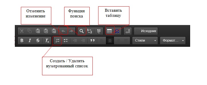 Кликните на поле колонки "Элемент" / "Стем", в котором отображается слово или словосочетание для вызовапанели визуального редактора, с помощью которого возможно выполнить различные действия по форматированию, например: (Рис. №4.5)